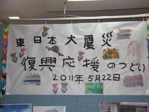 東日本大震災の復興を応援するために、かしの木学園利用者・保護者・職員、地域の人たちとつどいを開催しました。 東日本へ向けて思いを込めて鶴を折ったり、災害対策クイズをしたり、対策のビデオを見たりしました。 義援金も集めました。みんなの思いがつまったお金を役立ててもらえるところに送ります。