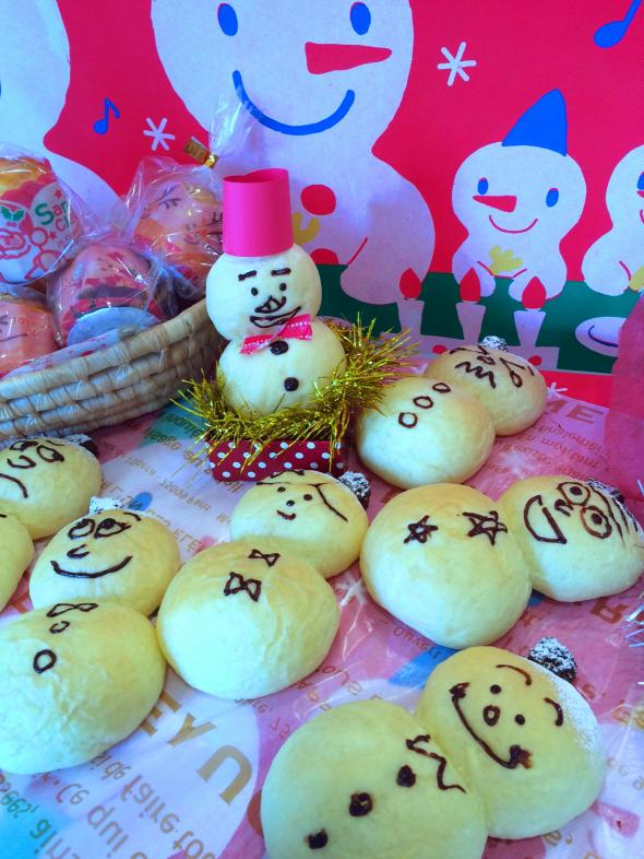 まずはおなじみの「マフィン~クリスマス仕様」が12月から登場。そして新商品の「雪だるま」頭の部分はリンゴのクリームチーズ、体の部分はベルギーチョコクリーム。