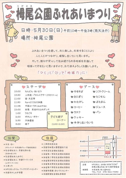 それを受けNPOふれあいほうむ“どうぞ”作業所さん、中京ボランティアサークルゆいさんなどの呼びかけで、中京区の各福祉団体が集まり手作りの祭りを開催することとなりました。
