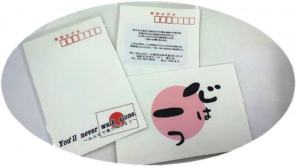 【紙好き交流センター】から、府内授産施設等で作られた『応援メッセージ入り紙漉きハガキ』の販売を通じて、義援金を募りたいという提案がありました。