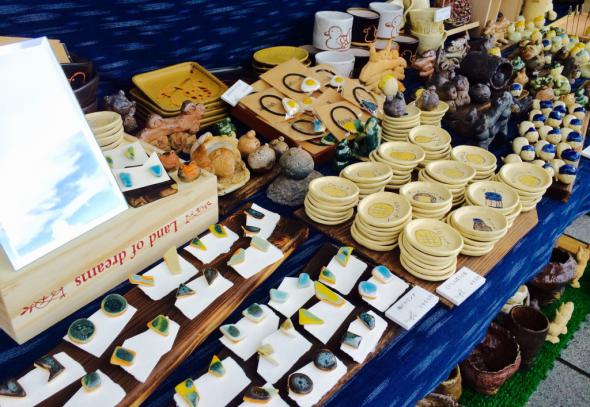 本日7日(金)より、『五条坂 陶器まつり』が始まりました! 焼き締めの花器からカラフルなアクセサリーまで、いろいろな陶製品がたくさん並んでいます!もちろん、陶器のほかにも、手漉き製品や編製品を販売しています~。 とても暑いですが、きっと素敵な陶製品が見つかりますよ。夜は22時ごろまで営業していますので、是非お越しください。