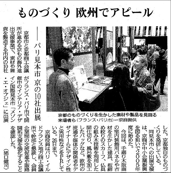 1月22日(金)~1月26日(火)にフランス・パリで開催されました、インテリア・デザイン国際見本市『メゾン・エ・オブジェ(MAISON & OBJET 2016)』に、渡文株式会社様とのコラボ作品を出展させていただきました。渡文株式会社様が制作された西陣織の巾着の中に、なづな学園の陶芸メンバーが自由に創作したおちょこを入れていただきました☆