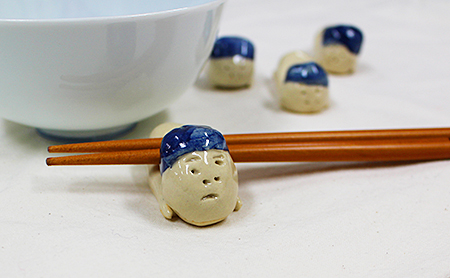 天使“ピエール”シリーズ。定番のお箸おき、カップなど。 作者のユーモアあふれる、なんとも言えない表情です。