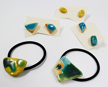垂れた釉薬や、偶然できた形から、アクセサリーに。